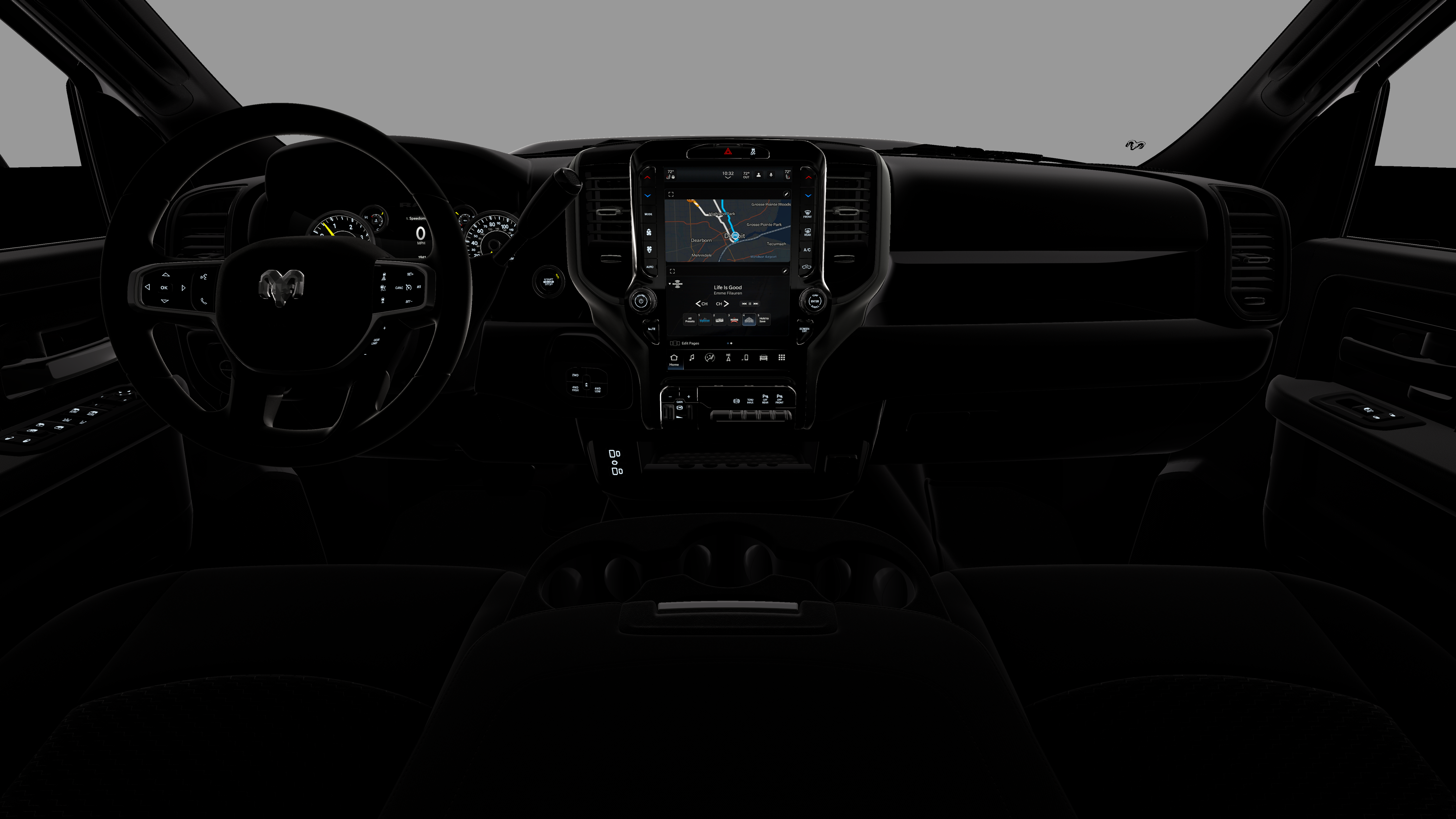 - Radio w/Seek-Scan, Clock, Speed Compensated Volume Control, Aux Audio Input Jack, Voice Activation, Radio Data System and Uconnect External Memory Control