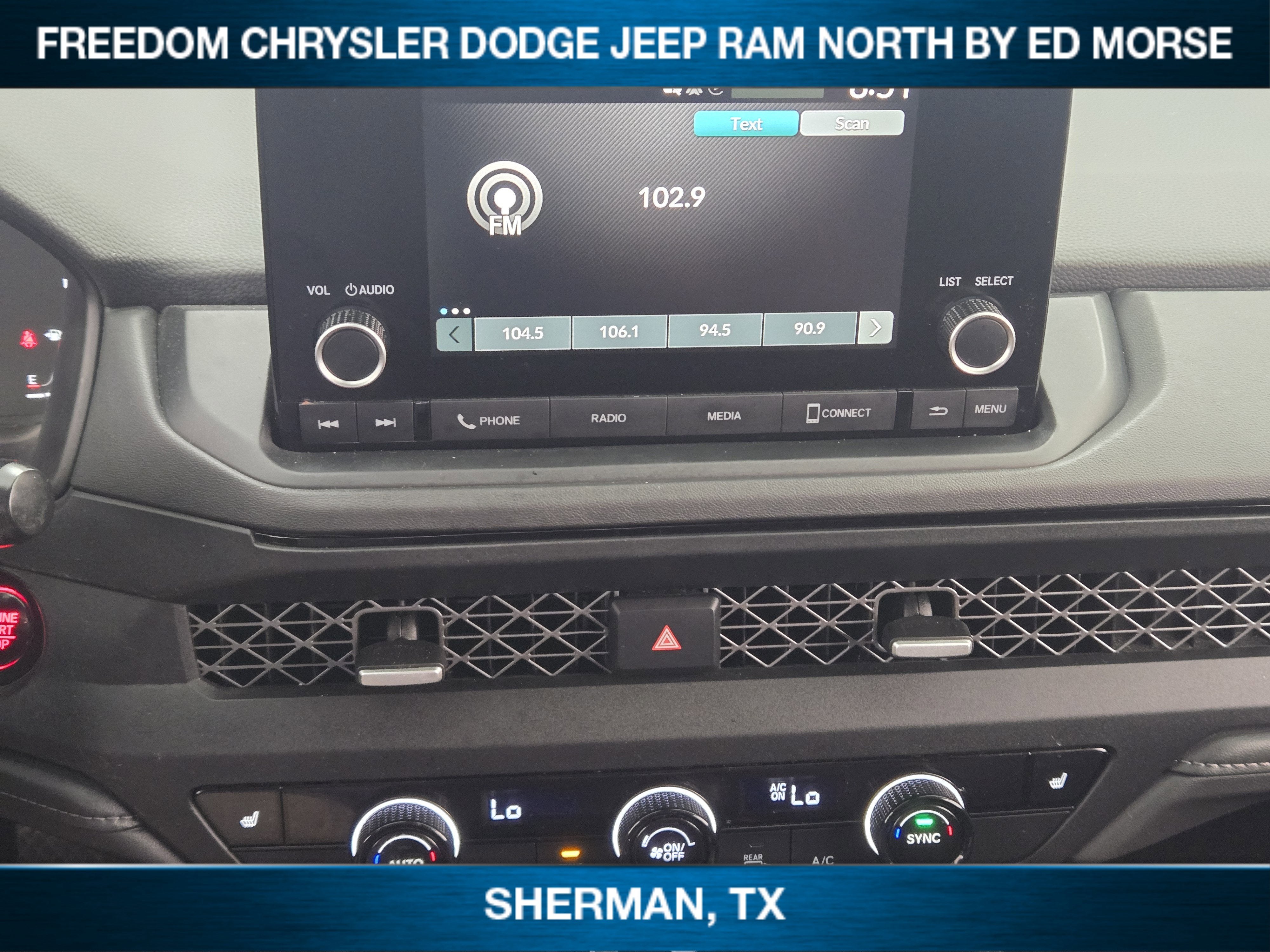 - Radio w/Seek-Scan, Clock, Speed Compensated Volume Control, Steering Wheel Controls, Voice Activation and Radio Data System